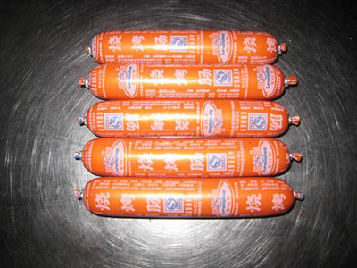 灌装:用直径30~40毫米的塑料肠衣灌制。